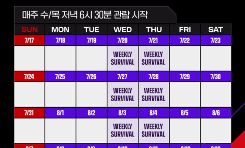 7월 27일 (수) 오후 7시부터 2주차 위클리 서바이벌 진행