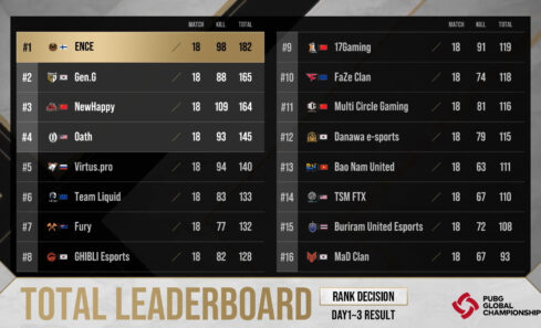 유럽 ENCE, 순위결정전 종합 1위, 위클리 서바이벌 직행 16개 팀 확정